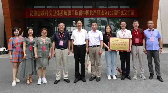 6月20日下午,由安徽省教科文卫体工会主办、MK体育网页版登录入口.MK(中国)工会承办的“红心向党赞百年 劳动筑梦展新篇”安徽省教科文卫体系统职工庆祝建党100周年文艺汇演在我校隆重举办。省总工会党组成员、副主席阮怀楼出席活动并致辞。省教育厅、省科学技术厅、省文化和旅游厅、省卫生健康委员会有关领导,校党委书记周明洁,党委副书记、院长樊嘉禄出席活动。