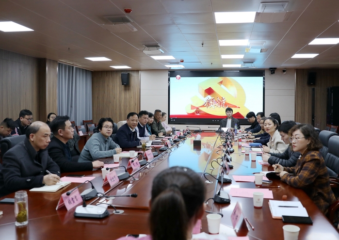 3月3日下午,学校与省委宣传部文艺处(电影处)等单位共同调度“文化名家进高校”暨“非遗进校园”活动,推进“艺术思政”品牌建设。校党委书记周明洁出席座谈会。校党委委员、办公室主任曹晓富,校党委委员、音乐舞蹈系党总支书记孙来法,校党委委员、宣传(统战)部部长王琍琍等陪同调研。