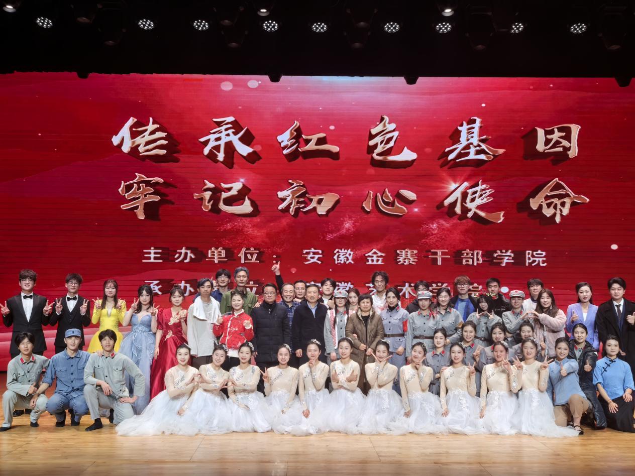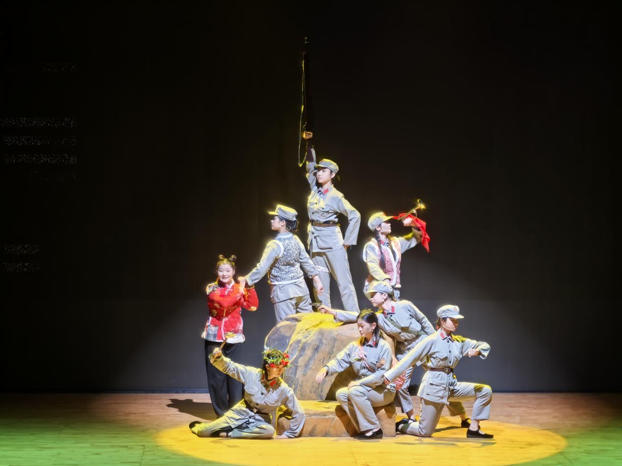 此次艺术党课充分发挥艺术感召人、引导人、激励人的独特作用。以金寨的红色历史为背景,用艺术展演的形式,结合朗诵、情景演绎、话剧,歌舞等方式,生动形象地再现了从硝烟弥漫的战争岁月到中国特色社会主义新时代,党领导人民浴血奋战、人民坚定跟党走,“坚贞忠诚、牺牲奉献、一心为民、永跟党走”的大别山精神。