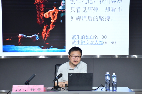 许锐结合自己创作舞剧《徽班》《红高粱》《戈壁青春》《五星出东方》时在选题、采风、素材收集、创作构思等方面的艺术实践与思考,对舞剧创作中的文化自信问题作了深入浅出的阐释,既有理论的思考,又有实践的指导。他认为,中华民族5000多年的文明传承是我们文化自信的基础,是最基本、最深沉、最持久的力量。文化自信不是一句口号,文艺工作者要把它同艺术实践相结合,要与时代同行,要找到当代的表达;好的作品、好的研究,文化自信都是点点滴滴渗透其中;文化自信不是临时起意,不是表演假装,是基于认识、梦想、信念的自然生长。