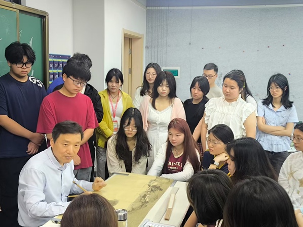 亲友师生还一同走进学校美术馆,参观“东方微笑——麦积山石窟壁画艺术巡展”。新安画派研究院副院长王力平为大家进行细致讲解,让家长代表们充分感受学校的美育浸润行动。
