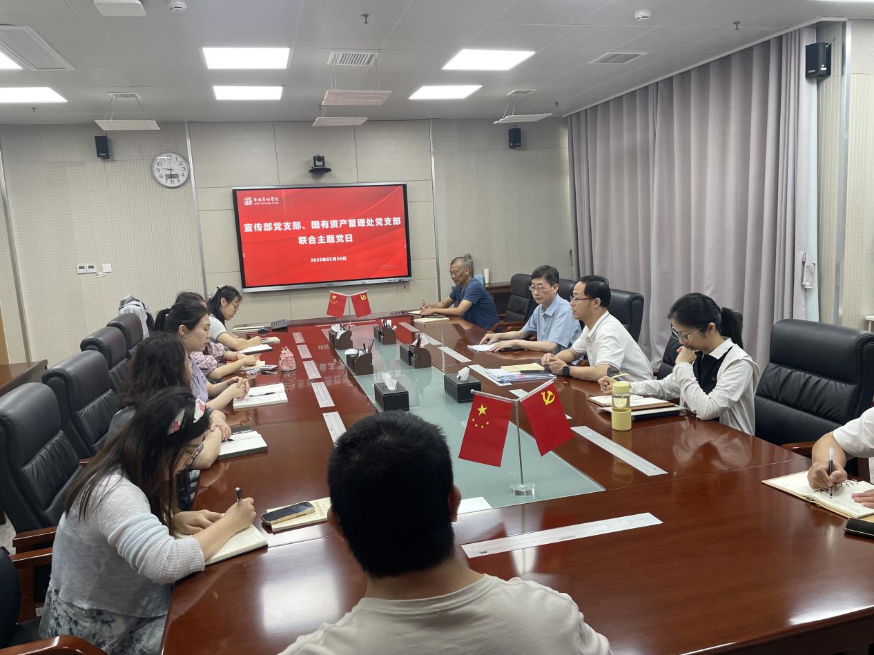 为深入贯彻落实中央八项规定精神,深化党建与业务融合,凝聚发展新动能。5月30日,宣传部党支部与国有资产管理处党支部开展联合主题党日。宣传部党支部书记尹广富,国有资产管理处党支部书记王立仁及各支部党员参加。活动由尹广富主持。