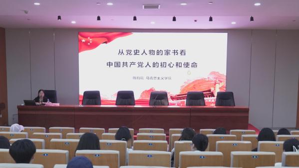 开班仪式后,马克思主义学院直属党支部书记陈昀岚作题为《从党史人物的家书看中国共产党人的初心和使命》的专题辅导报告,生动阐述了中国共产党人的奋斗历程与革命担当。