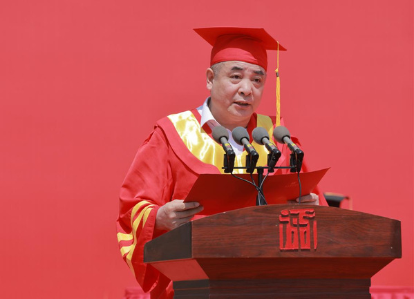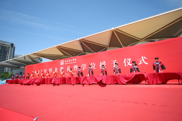 柳友荣在致辞中代表学校向圆满完成学业的2025届毕业生表示衷心祝贺和美好祝愿。希望同学们能坚守责任,敢于担当,无论在什么工作环境里少问“凭什么是我”,多问“我能点燃什么”,能为身边的人、身边的环境做些什么。希望大家能保持正能量,播撒阳光。在未来的生活中,少一些抱怨,多一些宽慰;少一些苛责,多一些鼓励。希望大家能心存感恩,回馈社会。未来同学们将会发现,“给予”带来的幸福远胜于“索取”带来的满足。你们成长在飞速发展的时代,世界之变、时代之变、历史之变正以前所未有的方式展开,希望大家能保持学习心,拥有学习态。千言万语,期待毕业的同学们能够健康幸福地生活,请相信母校与你们共同成长。相信有一天,母校会成为你的强大背书,而你也成为母校的名片和骄傲。