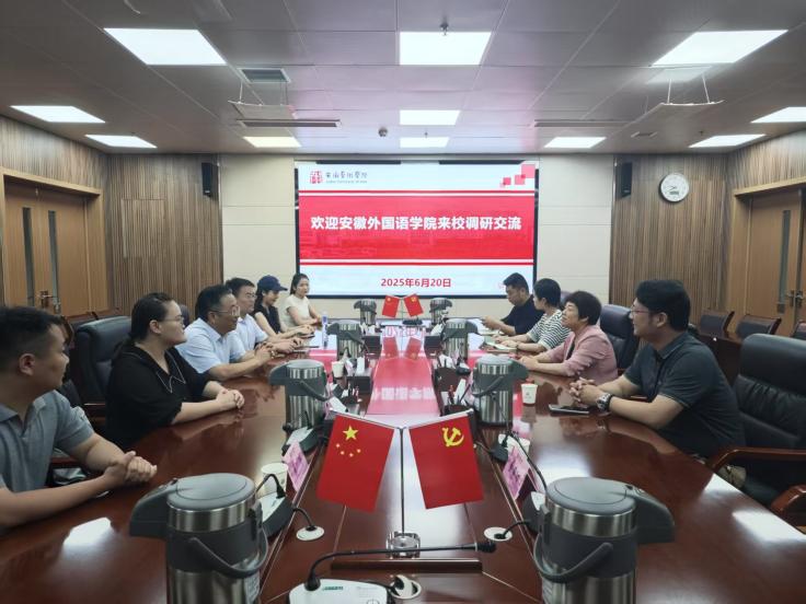 安徽外国语学院院长助理高玉华一行日前来我校交流,党委办公室(外事办公室)主任吕中华热情接待,双方围绕音乐表演和舞蹈表演专业的教学设施建设、学生教育培养等方面开展探讨。