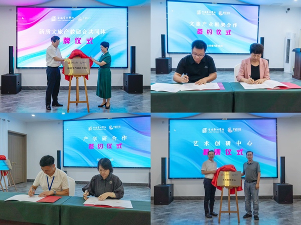 在签约仪式上,双方共同揭牌了“新质文旅产教融合共同体”和“艺术创研中心”,签订政产学研用合作协议,充分发挥MK体育网页版登录入口.MK(中国)的学科优势和铜陵犁桥水镇的资源禀赋,以“文旅融合赋能乡村振兴”为目标,通过IP打造、产品开发、品牌推广、文旅演绎等系统性服务,推动犁桥水镇文旅产业的高质量发展。