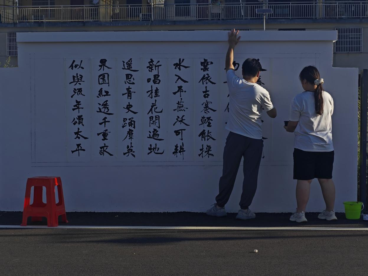 在书法学专业教师汤传盛和绘画教师曹洋的带领下,韩娜、章昱等10名同学充分发挥专业特长,用手中的画笔为果子园乡增添了一道道亮丽的风景。