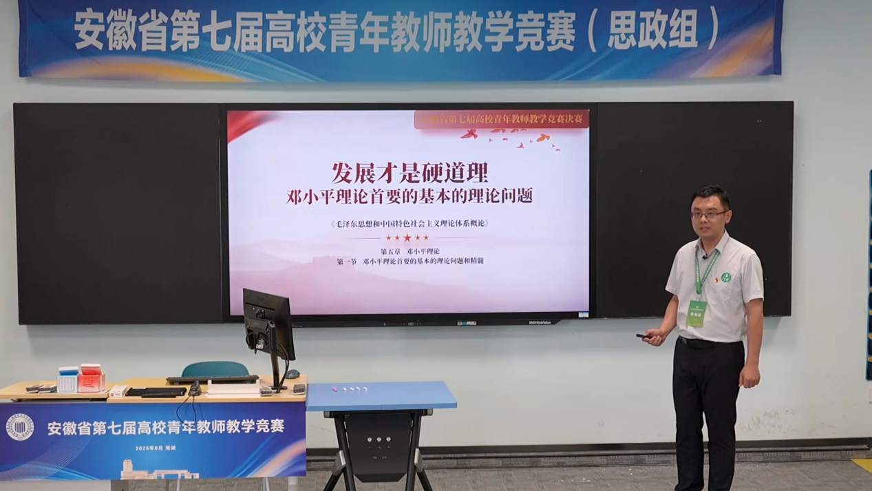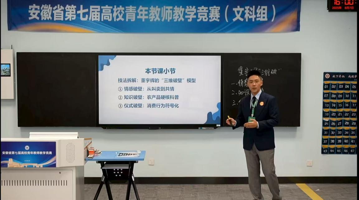 安徽省第七届高校青年教师教学竞赛于上月圆满收官。我校传媒学院教师宋秋熠荣获文科组一等奖,马克思主义学院教师陆光荣获思政组优秀奖,学校获评优秀组织奖。