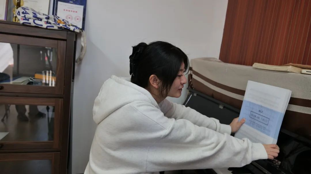备战大学生职业规划的过程中,晓楠发现特殊教育具有很强的专业性,仅靠现有的专业学习、志愿服务还远远不够。音乐学院即刻启动“一生一案”,结合音乐特教老师的素养需求,从本学期开始直至大四,持续为晓楠专设声乐方向课程,从呼吸、气息的基础训练到《演唱与表演》专业任选课,再到拓展的《钢琴调律与维修》和融合了心理学知识的《音乐治疗》。相应的,晓楠的钢琴主课方向,也增设《钢琴协奏》《声乐艺术指导》等课程,以给声乐学生弹伴奏等形式获得更多锻炼和展示机会。