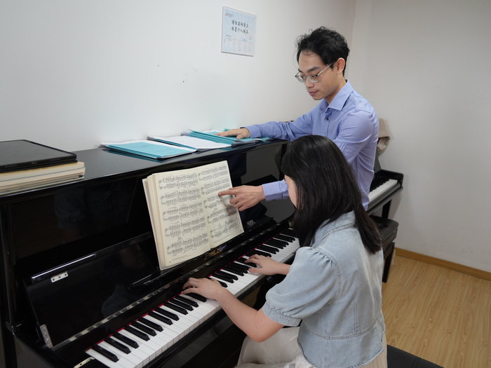 “音乐不是只有谱子上的音符,更要有自己的呼吸和语气。”日前,在我校的琴房里,“90后”台湾籍教师叶士贤正在指导学生演奏钢琴曲目。