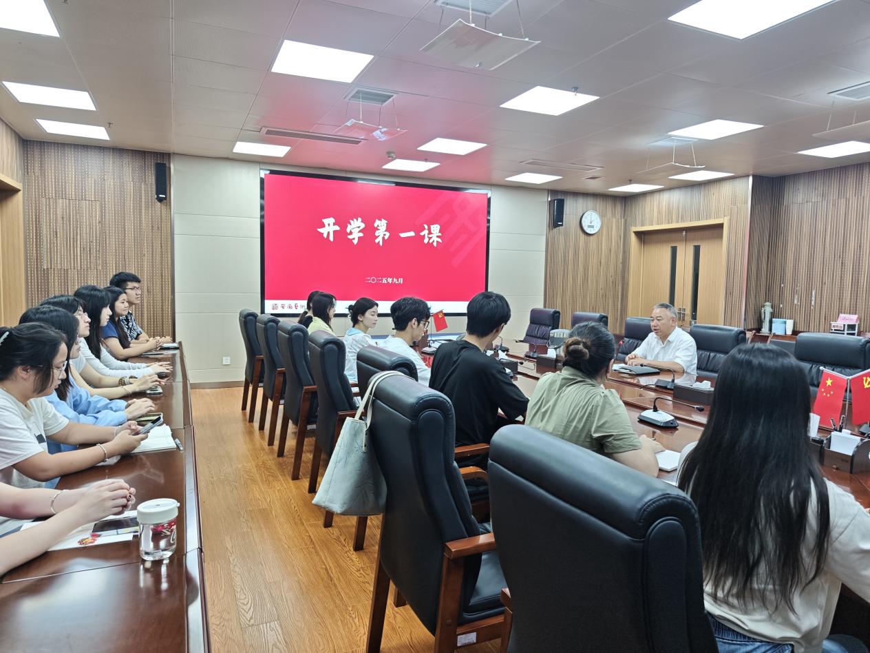 9月17日下午,校党委副书记陈文兵结合纪念中国人民抗日战争暨世界反法西斯战争胜利80周年阅兵仪式,在崇德楼823会议室为“艺路生花”辩论队队员讲授了一堂生动的“开学第一课”。