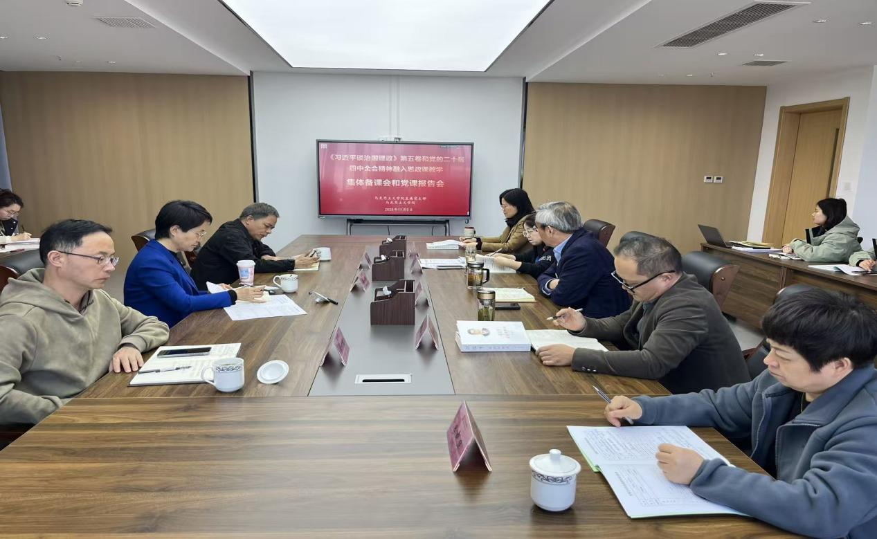 为深入学习领会《习近平谈治国理政》第五卷核心要义,全面贯彻落实党的二十届四中全会精神,促进思政课建设与党的创新理论武装同步推进,11月5日下午,马克思主义学院在崇德楼604会议室召开《习近平谈治国理政》第五卷和党的二十届四中全会精神融入思政课教学集体备课会暨党课报告会。校党委书记韩军出席会议并讲话。会议由马克思主义学院直属党支部书记陈昀岚主持。