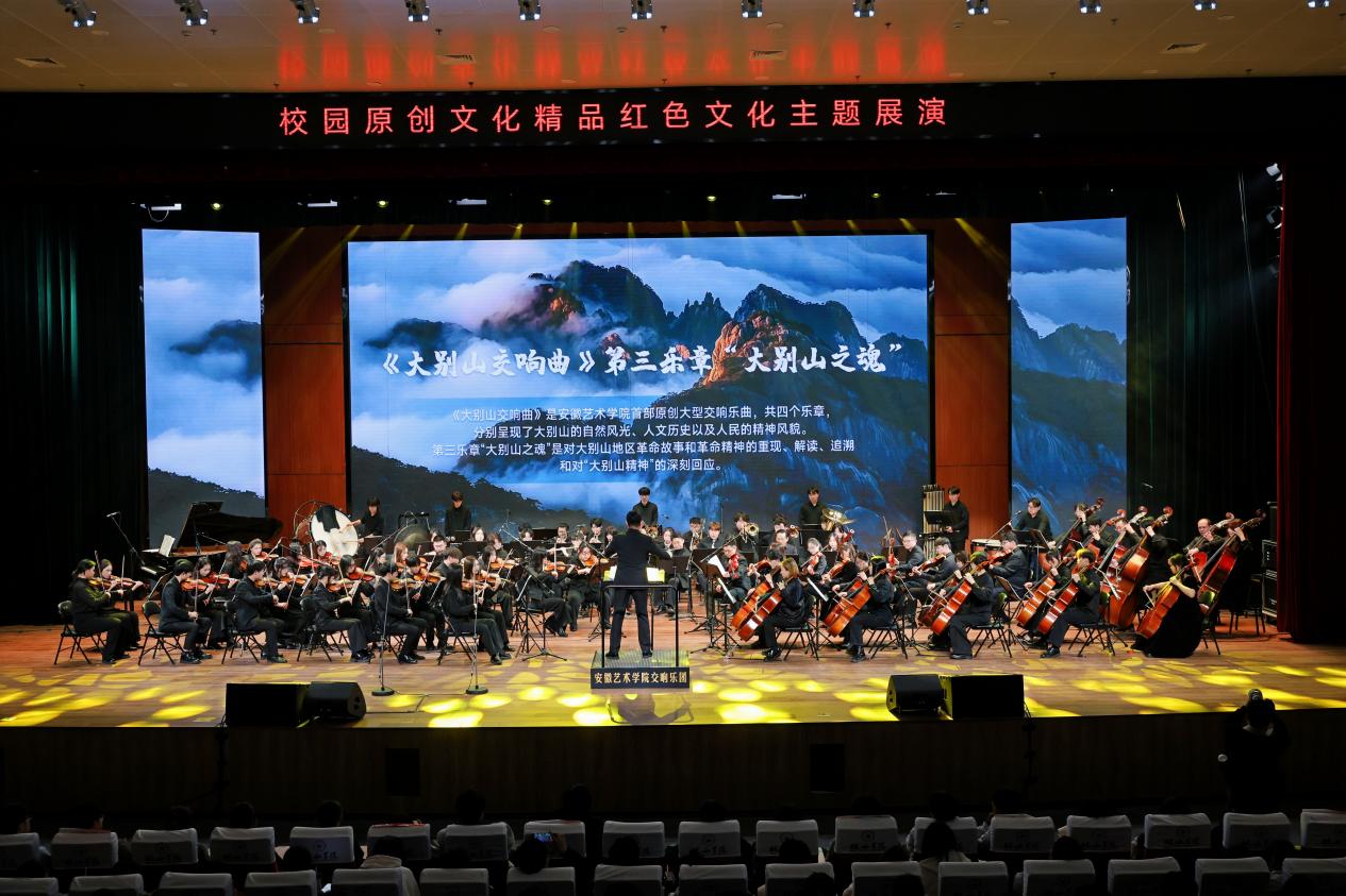 师生们以歌声为笔、旋律为墨,展开一幅融合红色历史、秀美风光与人文情怀的动人画卷,《又见桂花开》深情演绎了革命传统的传承和红色基因的延续,《大别山交响曲》用恢宏的管弦之声诠释了大别山的革命之魂,让现场观众在文化浸润中感受时代发展脉搏,在艺术熏陶中坚定理想信念。