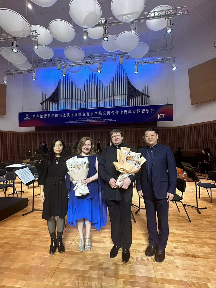近日,学校与哈尔滨音乐学院、圣彼得堡国立音乐学院合作交流座谈会在哈尔滨音乐学院举行。圣彼得堡国立音乐学院院长阿列克谢·瓦西里耶夫,外事处处长列金娜·格拉祖诺娃,哈尔滨音乐学院国际合作与交流处处长王辉,我校继续教育(国际教育)学院院长陈明出席会议。
