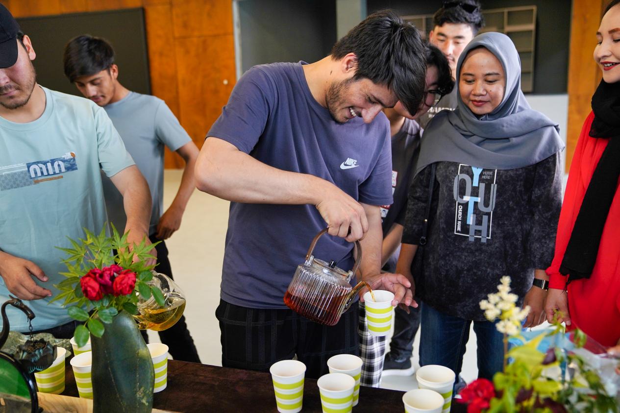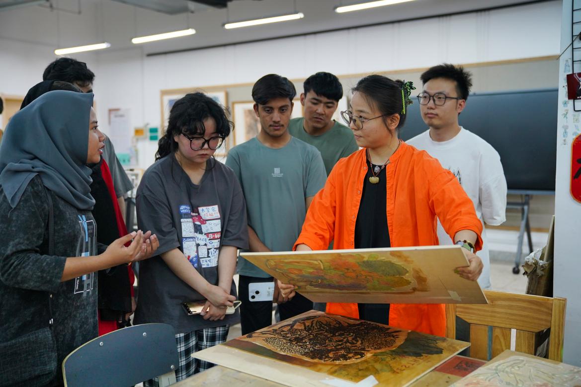 来自多所在肥高校的国际学生们在学校参观实验剧场、音乐厅、美术馆、版画工作室等教学场地,品徽式下午茶,看“麦积山石窟壁画艺术展”,感受中国传统文化的魅力和安徽艺术的风采。