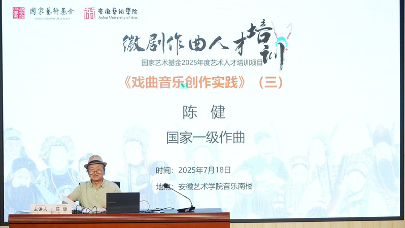7月18日上午,安徽省徽京剧院国家一级演奏员项艾主讲的《徽剧音乐与创作》(二)课程开讲。